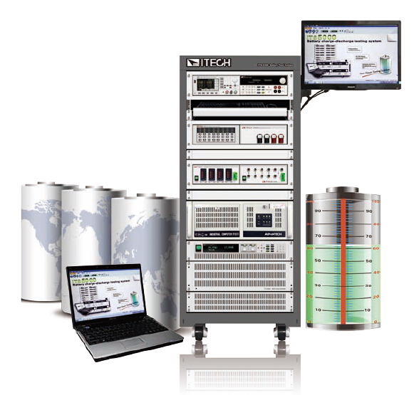 ITS5300電池充放電測試系統(tǒng)專門用于各種動(dòng)力電池(鉛酸、鎳氫、鋰電池、超級(jí)電容、氫燃料電池等)進(jìn)行性能檢測,能夠模擬電動(dòng)汽車對(duì)電池組的各種等效工況要求??赏瑫r(shí)對(duì)上百個(gè)電池包或上百電池包中的200個(gè)單體電芯性能檢測,較大的提高了產(chǎn)線的測試效率和產(chǎn)量。ITS5300測試系統(tǒng)由ITECH電源、電子負(fù)載、內(nèi)阻測試儀、溫度采集儀等產(chǎn)品搭配專業(yè)的電池測試軟件所組成,自動(dòng)化程度高,具有較高的穩(wěn)定性,是用戶測試的良好選擇。